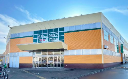 売場奥の壁面と入口前のカート置き場にSyncaをご採用いただきました。