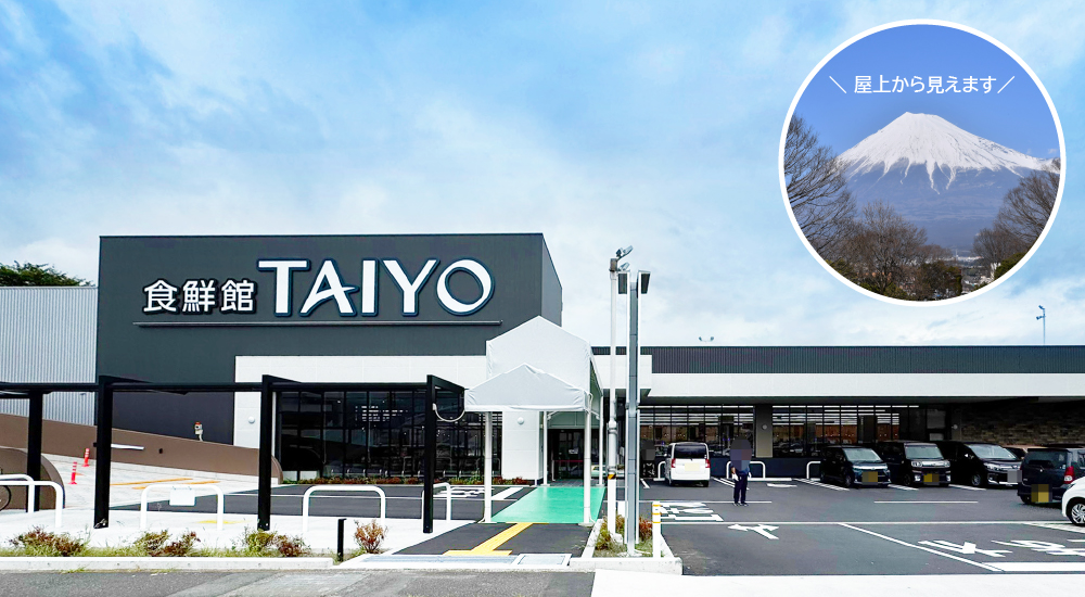 1階は食鮮館タイヨー様 として最大となる約480坪の売場、2階の駐車場からは富士山を望むことができます。