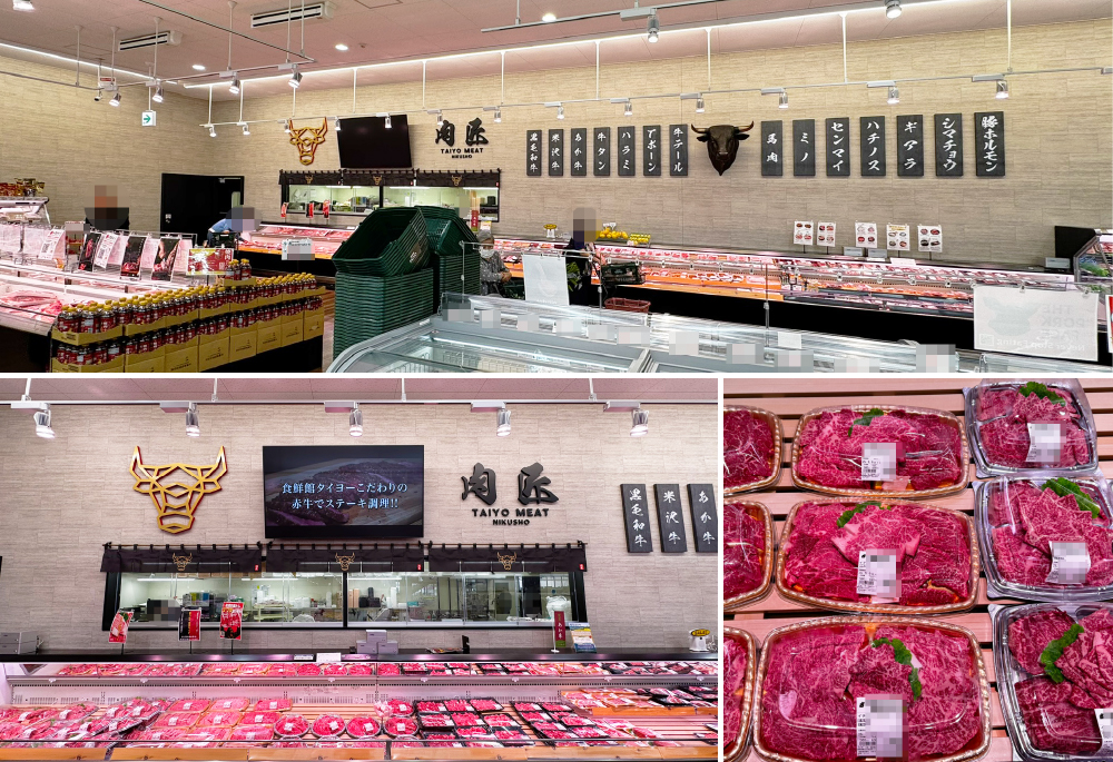 内装が目を引く精肉売場は、和牛の赤身をより際立たせる光色をご採用いただきました。(フレッシュE)