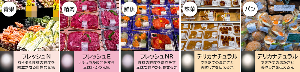 ◆生鮮食品専用照明FreshDeliシリーズ ご採用光色