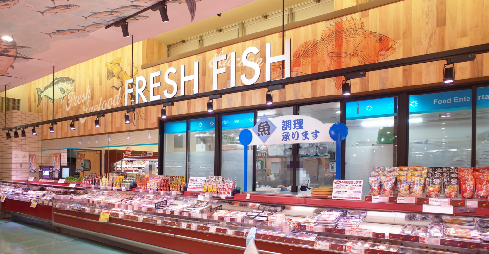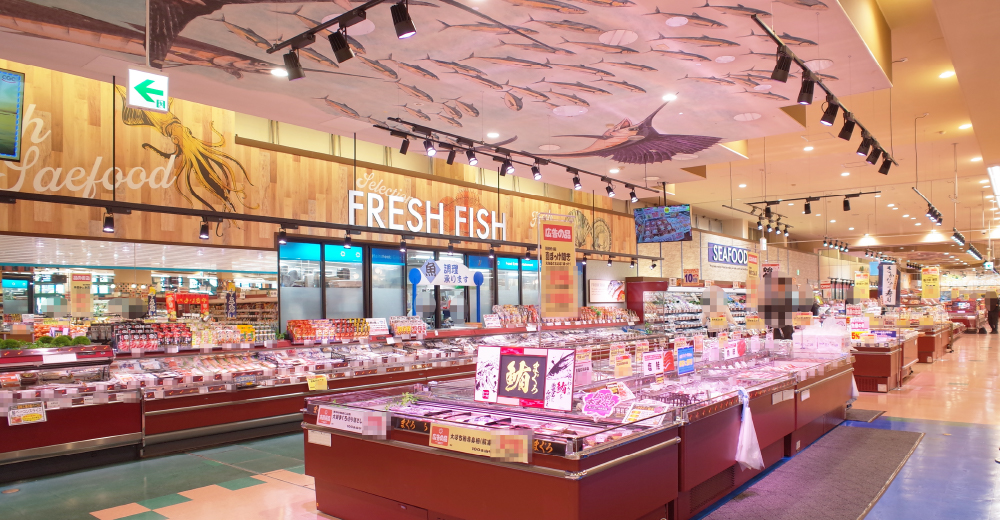 便利で快適にお買い物をしやすい店内レイアウトへの変更、他店舗で人気の鮮魚店の寿司や地産地消を目指した品揃えなど売場を刷新されました。