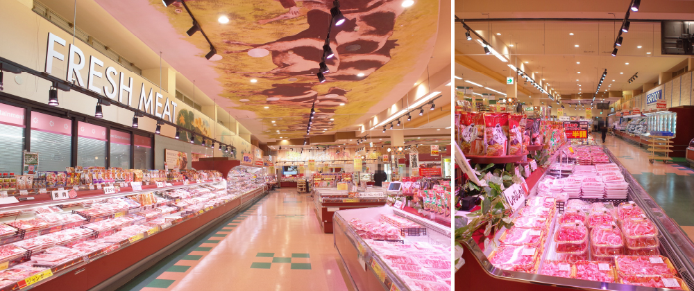 改装前後で照明計画を大幅に見直され、リニューアル感アップにつながりました。鮮魚売場や精肉売場は、新製品のスポットライトをご採用いただきました。