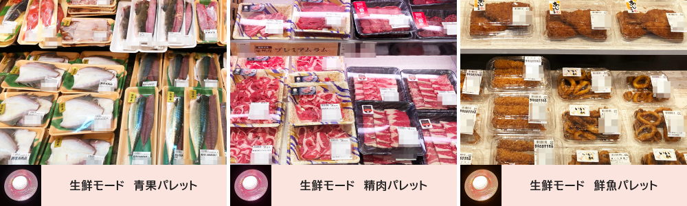 カテゴリ毎にお客様が選ばれた光色で、食材の魅力を最大限に引き立てています。