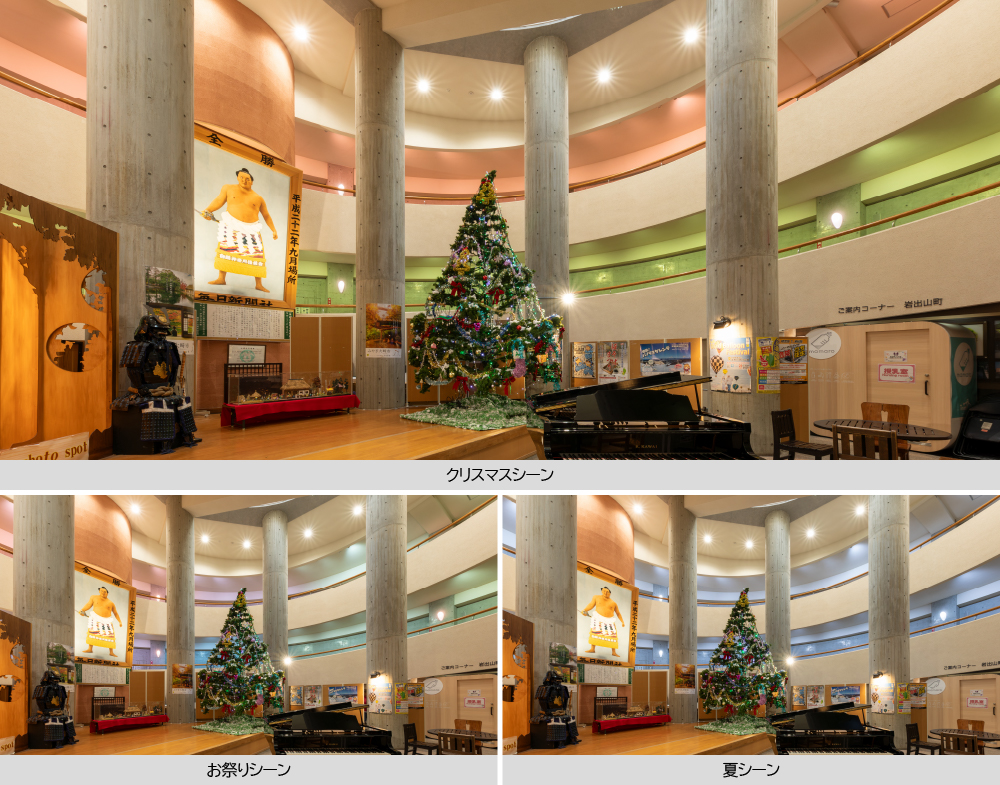 年間300万人以上が来館される既存施設の照明更新に、全館で調光調色スケジュール運用をレンタルでご採用いただきました。イベントも開催されるホールは豊富なカラーのSyncaを活用し、SNS映えを意識したカラフルで楽しい照明演出をされています。