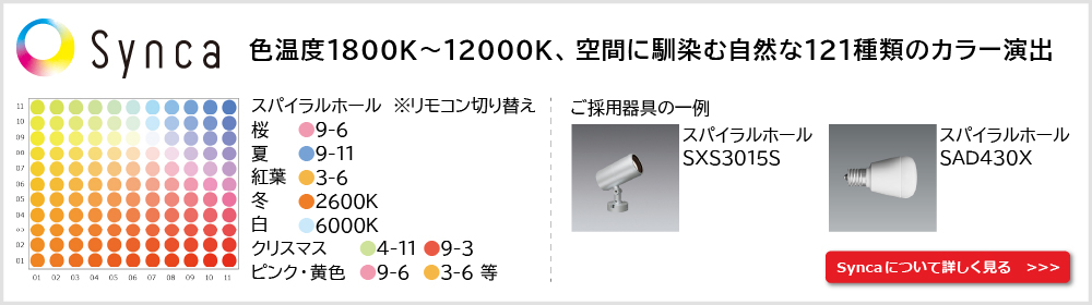 時間帯での光色切替とリモコン2台の操作で、全12パターンから季節やイベントに合わせた光色をお選びいただけます。