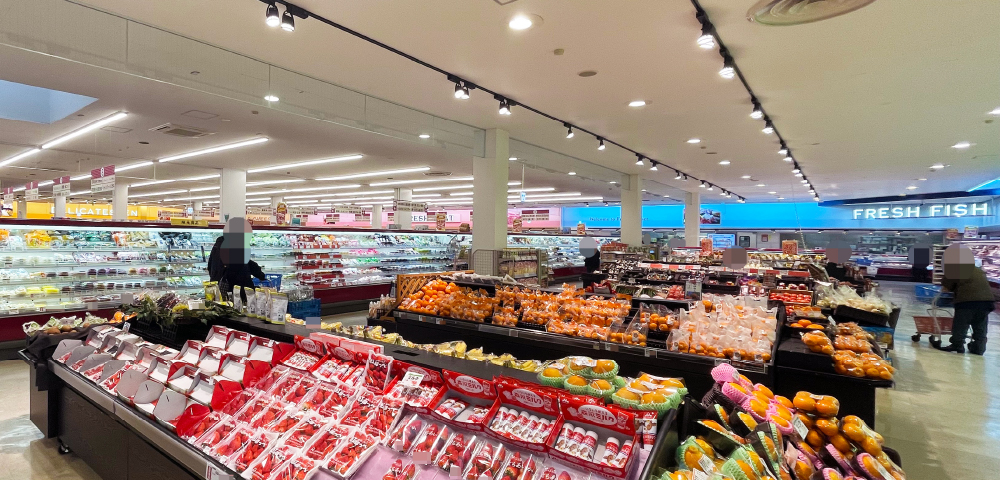 山形県と宮城県で62店舗を展開される地域密着型スーパーマーケットがLEDからLEDへの照明更新をされました。天気に合わせて明るさが変化する最新の照明制御を導入いただき、照明環境と消費電力削減にこだわった運用をされています。