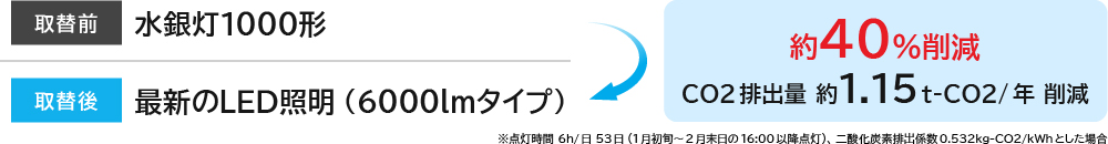 従来光源からLED照明への取り替えで明るく安全な施設を維持しながら、消費電力を約40%削減されました。