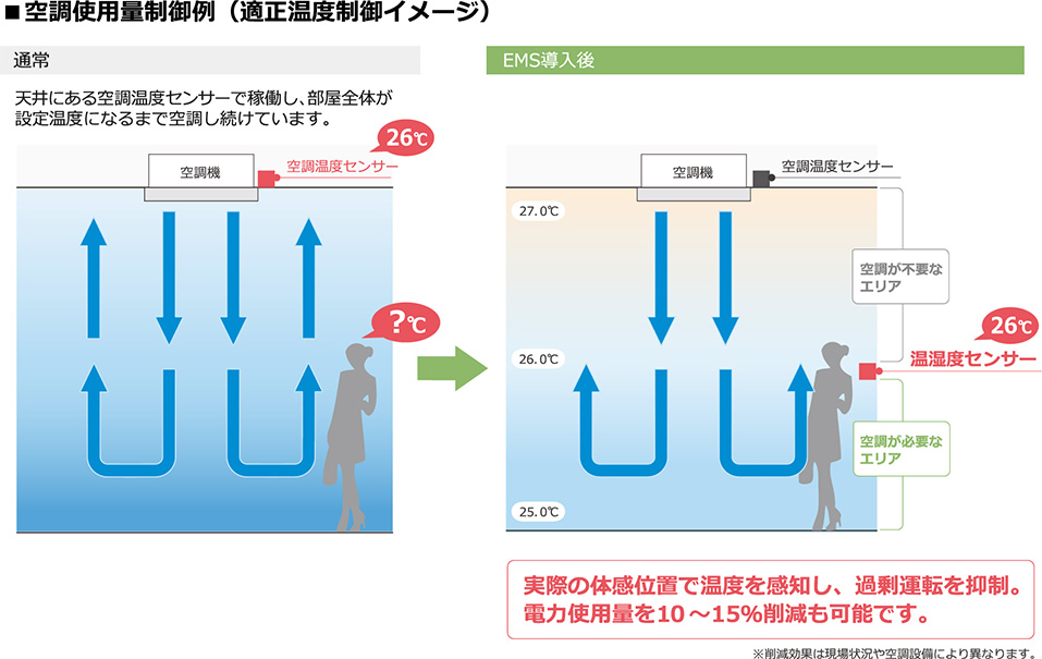 温湿度・人感・照度・タイマー・入退室・防犯などの様々なセンサー情報と、照明・空調・警報が連動し 制御されます。販促システムや、総エネシステムとの連携も可能です。